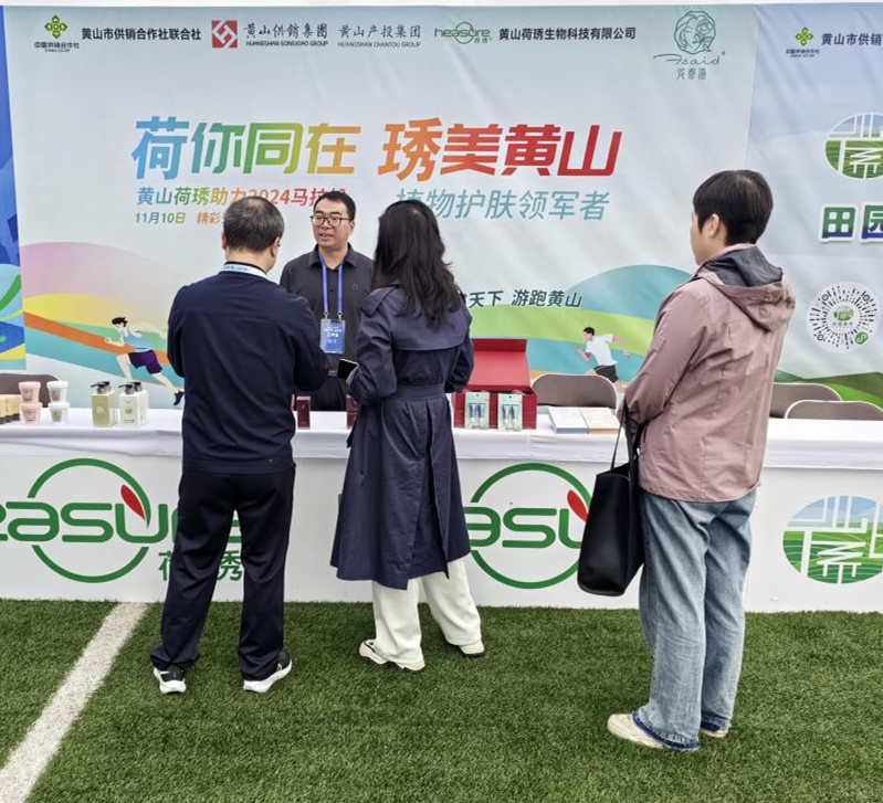 在黃山供銷·黃山產投集團統一組織下,黃山荷琇積極攜手黃山馬拉松賽事,并為跑友們帶去了舒緩肌肉的特色本地產品——松肌凝露。新奇的產品融合本地特色植物元素,契合的功效體驗,吸引了大量跑友的關注和試用,并對產品效果給予了肯定。